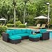 Modway EEI-2207-EXP-TRQ-SET 6 Piece Convene Wicker Rattan Outdoor Patio Sectional Sofa Furniture Set, Seating For Four - Two Ottomans, Espresso Turquoise