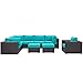 Modway EEI-2208-EXP-TRQ-SET 9 Piece Convene Wicker Rattan Outdoor Patio Sectional Sofa Furniture Set, Seating For Seven - Two Ottomans, Espresso Turquoise