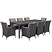 Convene Collection EEI-2217-EXP-MOC-SET 9 PC Outdoor Patio Dining Set with Synthetic Rattan Weave, Power Coated Aluminum Frame, Machine Washable Cushion Covers, Water and UV Resistant Cushions Including 8 Armchairs and a Rectangular Glass Top Table in Espresso and Mocha Color