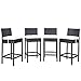 Modway Convene Wicker Rattan Outdoor Patio Bar Stools With Cushions in Espresso White - Set of 4