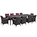 Modway Convene 11 Piece Patio Dining Set in Espresso and Red