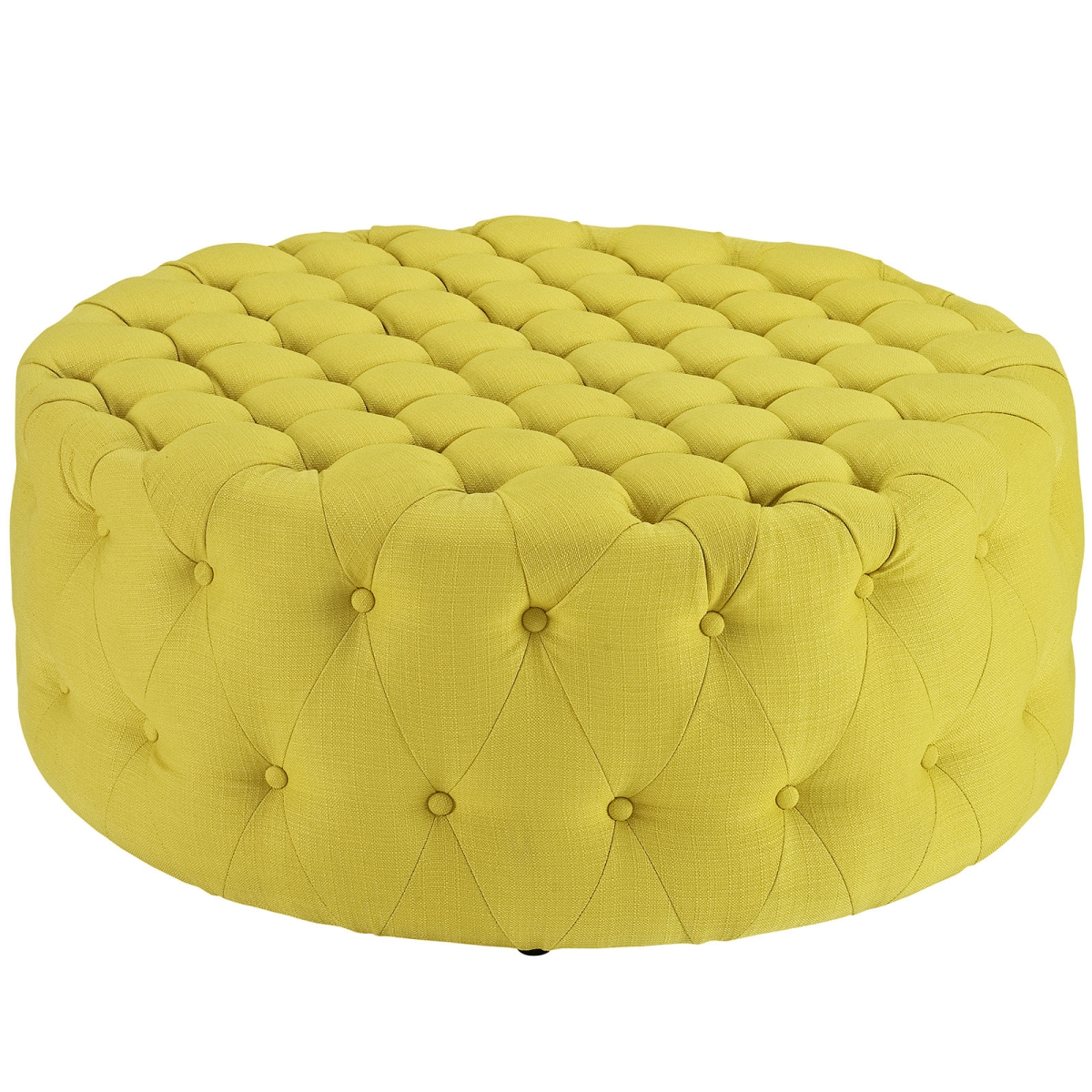 Modway Amour Fabric Upholstered Button-Tufted Round Ottoman in Sunny