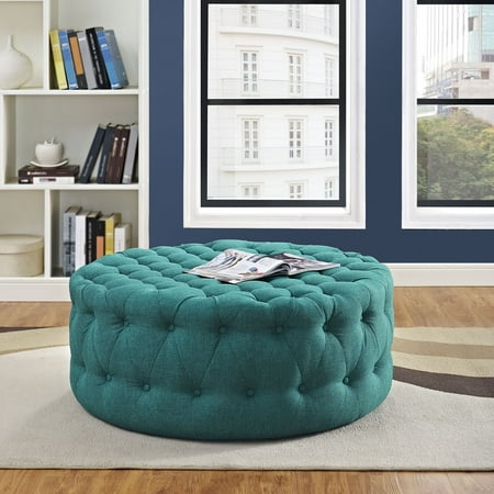 Modway Amour Fabric Upholstered Button-Tufted Round Ottoman in Teal