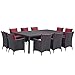 Modway Convene Collection 11-Piece Outdoor Patio Dining Set in Espresso Red