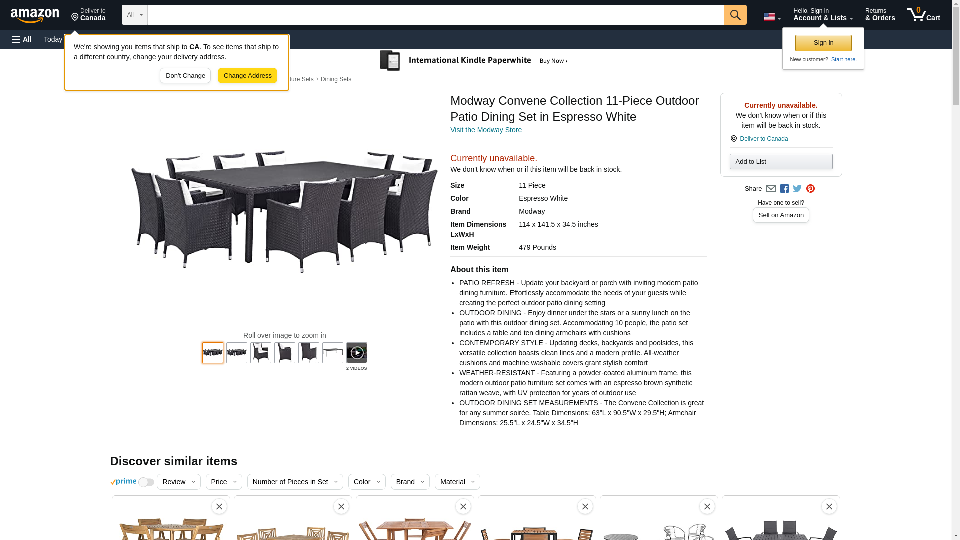 Convene Collection EEI-2240-EXP-WHI-SET 11-Piece Outdoor Patio Dining Set with Powder Coated Aluminum Frame, Machine Washable Cushion Covers, Water and UV Resistant Including Dining Table and 10 Armchairs in Espresso and White Color