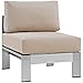 Modway Shore Aluminum Outdoor Patio Armless Chair in Silver Beige