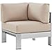 Modway Shore Aluminum Outdoor Patio Corner Chair in Silver Beige