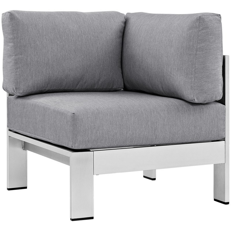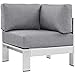 Modway Shore Aluminum Outdoor Patio Corner Chair in Silver Gray