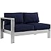 Modway Shore Aluminum Outdoor Patio Left Arm Loveseat in Silver Navy