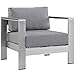 Modway Shore Aluminum Outdoor Patio Armchair in Silver Gray