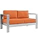 Modway Shore Aluminum Outdoor Patio Loveseat in Silver Orange