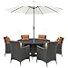Modway Sojourn 8 Piece Patio Dining Set with Umbrella in Canvas Tuscan