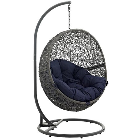 Hide Collection EEI-2273-GRY-NAV 40" Outdoor Patio Swing Chair with Powder-Coated Steel Frame, Synthetic Rattan Weave and Washable Polyester Cushion in Gray and Navy