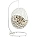 Hide Collection EEI-2273-WHI-BEI 40" Outdoor Patio Swing Chair with Powder-Coated Steel Frame, Synthetic Rattan Weave and Washable Polyester Cushion in White and Beige