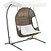 Vantage Collection EEI-2278-BRN-WHI-SET 56" Outdoor Patio Swing Chair with Powder-Coated Steel Frame, Washable Polyester Cushions and Synthetic Rattan Weave in Brown and White