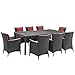 Modway EEI-2309-CHC-RED-SET Sojourn 9 Piece Outdoor Patio Sunbrella Dining Set in Canvas Red, Eight