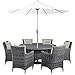 Modway Summon 8 Piece Outdoor Patio Dining Set With Umbrella And Sunbrella Brand Antique Beige Canvas Cushions