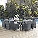 Summon Collection EEI-2333-GRY-GRY-SET 11 PC Outdoor Patio Sunbrella Dining Set including a Dining Table and 10 Armchairs with Powder Coated Aluminum Frame and Synthetic Rattan Weave in Canvas and Grey Color