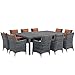 Summon Collection EEI-2333-GRY-TUS-SET 11 PC Outdoor Patio Sunbrella Dining Set including a Dining Table and 10 Armchairs with Powder Coated Aluminum Frame and Synthetic Rattan Weave in Canvas and Tuscan