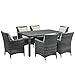 Summon Collection EEI-2334-GRY-BEI-SET 7-Piece Outdoor Patio Sunbrella Dining Set with Synthetic Rattan Weave, Powder Coated Aluminum Frame and Plush All-Weather Cushions Including Dining Table and 6 Armchairs in Canvas and Antique Beige Color