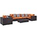 Modway Convene Wicker Rattan 7-Piece Outdoor Patio Sectional Sofa Furniture Set in Espresso Orange