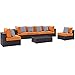 Convene Collection EEI-2357-EXP-ORA-SET 7-Piece Outdoor Patio Sectional Set with 4 Armless Chairs, 2 Corner Sections and Coffee Table in Espresso and Orange Color