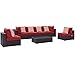 Modway Convene Wicker Rattan 7-Piece Outdoor Patio Sectional Sofa Furniture Set in Espresso Red