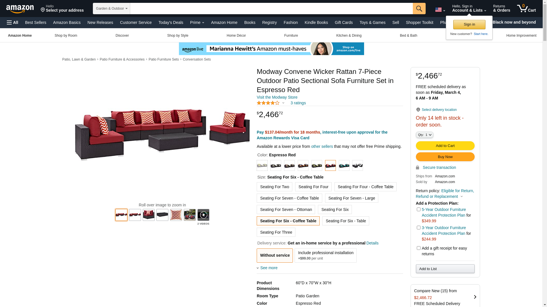 | MODWAY-FURNITURE-EEI2357EXPREDSET | 1 | -2 | 1 | 1 @ $3850.50 | |
