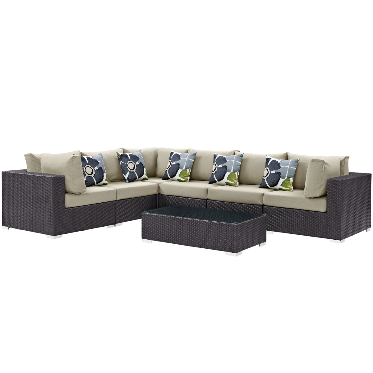 Modway Convene Wicker Rattan 7-Piece Outdoor Patio Sectional Sofa Furniture Set in Espresso Beige
