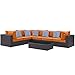 Modway Convene Wicker Rattan 7-Piece Outdoor Patio Sectional Sofa Furniture Set in Expresso Orange