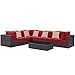 Modway Convene Wicker Rattan 7-Piece Outdoor Patio Sectional Sofa Furniture Set in Expresso Red