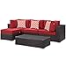 Convene Collection EEI-2362-EXP-RED-SET 5-Piece Outdoor Patio Sectional Set with Two Corner Section, Armless Section, Ottoman and Coffee Table in Red