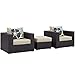 Modway Convene Wicker Rattan 3-Piece Outdoor Patio Furniture Set in Espresso Beige