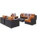 Modway Convene Wicker Rattan 8-Piece Outdoor Patio Sectional Sofa Furniture Set in Espresso Orange