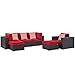 Convene Collection EEI-2372-EXP-RED-SET 6 PC Outdoor Patio Sectional Set with Synthetic Rattan Weave Material, Powder Coated Aluminum Frame, Water and UV Resistant in Espresso and Red Color