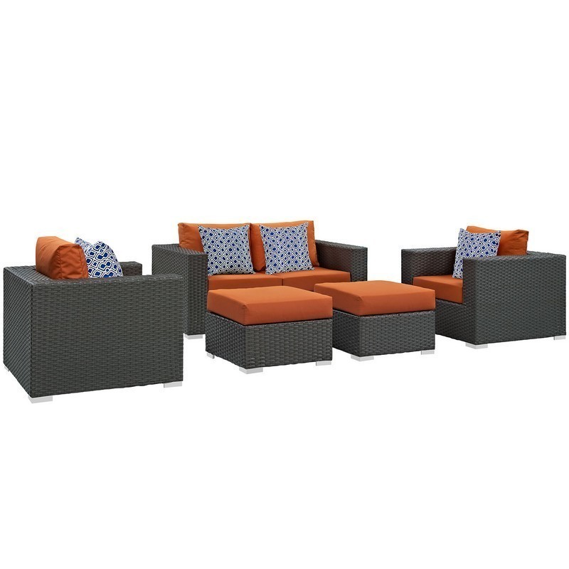 Modway EEI-2375-CHC-TUS-SET Sojourn Wicker Rattan 5 Piece Outdoor Patio Sunbrella Sectional Set, Canvas Tuscan Orange