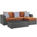 Modway EEI-2384-CHC-TUS-SET Sojourn Wicker Rattan 3 Piece Outdoor Patio Sunbrella Sectional Set, Canvas Tuscan Orange