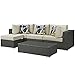 Sojourn Collection EEI-2385-CHC-BEI-SET 5 PC Outdoor Patio Sectional Set with Sunbrella Fabric, Synthetic Rattan Weave, Powder Coated Aluminum Frame, Water and UV Resistant in Canvas and Antique Beige Color