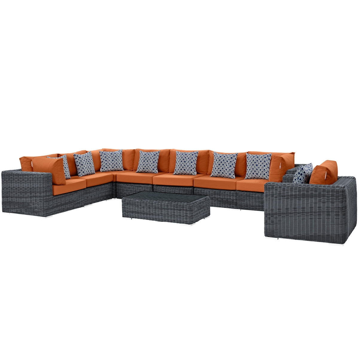 Modway EEI-2400-GRY-TUS-SET Summon Wicker Rattan 7-Piece Outdoor Patio Furniture Set, Seating for Eight, Canvas Tuscan Orange