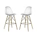 Modway Pyramid Mid-Century Modern Two Bar Stools with Natural Wood Legs in Clear