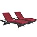 Modway Convene Wicker Rattan Outdoor Patio Chaise Lounge Chairs in Espresso Red - Set of 2