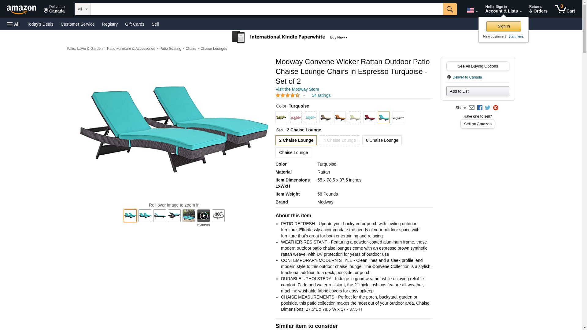 Convene Collection EEI-2428-EXP-TRQ-SET Set of 2 Outdoor Patio Chaise with Synthetic Rattan Weave Material, Powder Coated Aluminum Frame and All-Weather Fabric Cushions in Espresso and Turquoise Color