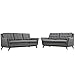 Modway Beguile Mid-Century Modern Sofa Upholstered Fabric With Sofa and Loveseat In Gray