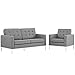 Modway Loft Upholstered Fabric Mid-Century Modern Loveseat and Armchair Set in Light Gray