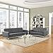 Modway Loft Upholstered Fabric Mid-Century Modern Sofa and Loveseat Set in Gray