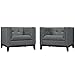 Modway Serve Modern Tuxedo Tufted Two Armchair Set with Upholstered Fabric in Gray