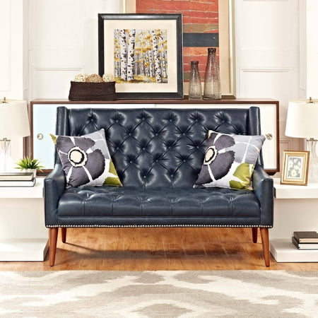 Modway Peruse Upholstered Modern Tufted Loveseat With Nailhead Trim in Blue Faux Leather