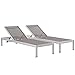 Modway Shore Aluminum Textilene® Mesh Outdoor Patio Two Poolside Chaise Lounge Chairs in Silver Gray