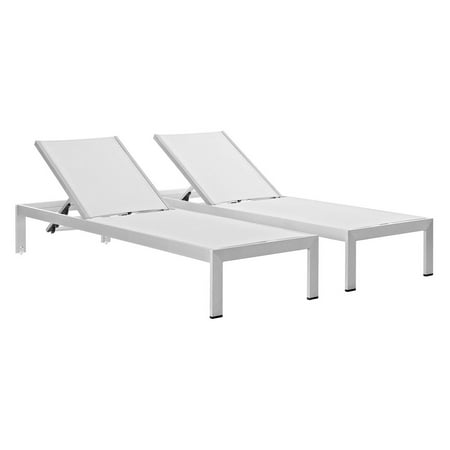 Modway Shore Aluminum Textilene® Mesh Outdoor Patio Four Poolside Chaise Lounge Chairs in Silver White