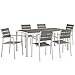Shore Collection EEI-2484-SLV-GRY-SET 7 PC Outdoor Patio Dining Set with Black Plastic Foot Caps, Plastic Wood Accent Paneling and Anodized Aluminum Frame in Silver and Grey Color